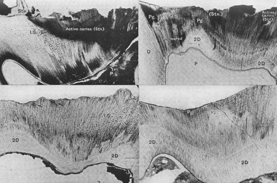 (A magas ásványi anyag tartalmú táplálékkal etetett gyermekek fogaiban bekövetkező szuvas területek megkeményedése az aktív folyamat leállását jelzi, és a fertőzött terület „gyógyulását” eredményezheti. Amint azt sejteni lehet, ezt a jelenséget a jól kialakított másodlagos dentin vastag lerakódása kíséri. Ezeket az eredményeket összegezve világossá válik, hogy az állatkísérletek alapján levont klinikai következtetések igazoltak, és ma már ismert, hogyan lehet visszaszorítani a szuvasodás terjedését, sőt megállítani az aktív szuvas folyamatot számos érintett fogban.)